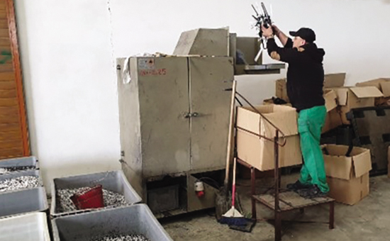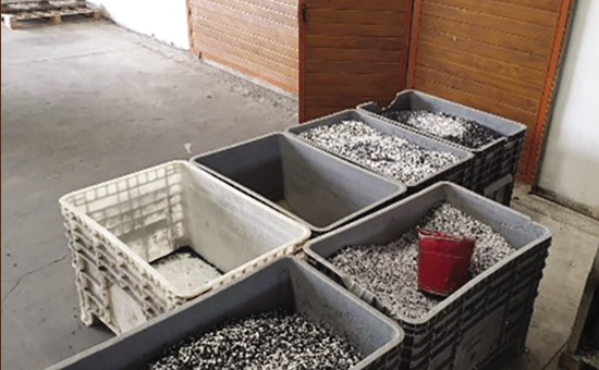 Tous les cintres ne pouvant être remis dans le circuit sont retournés à l'usine pour broyage en granules recyclés avec récupération des crochets.